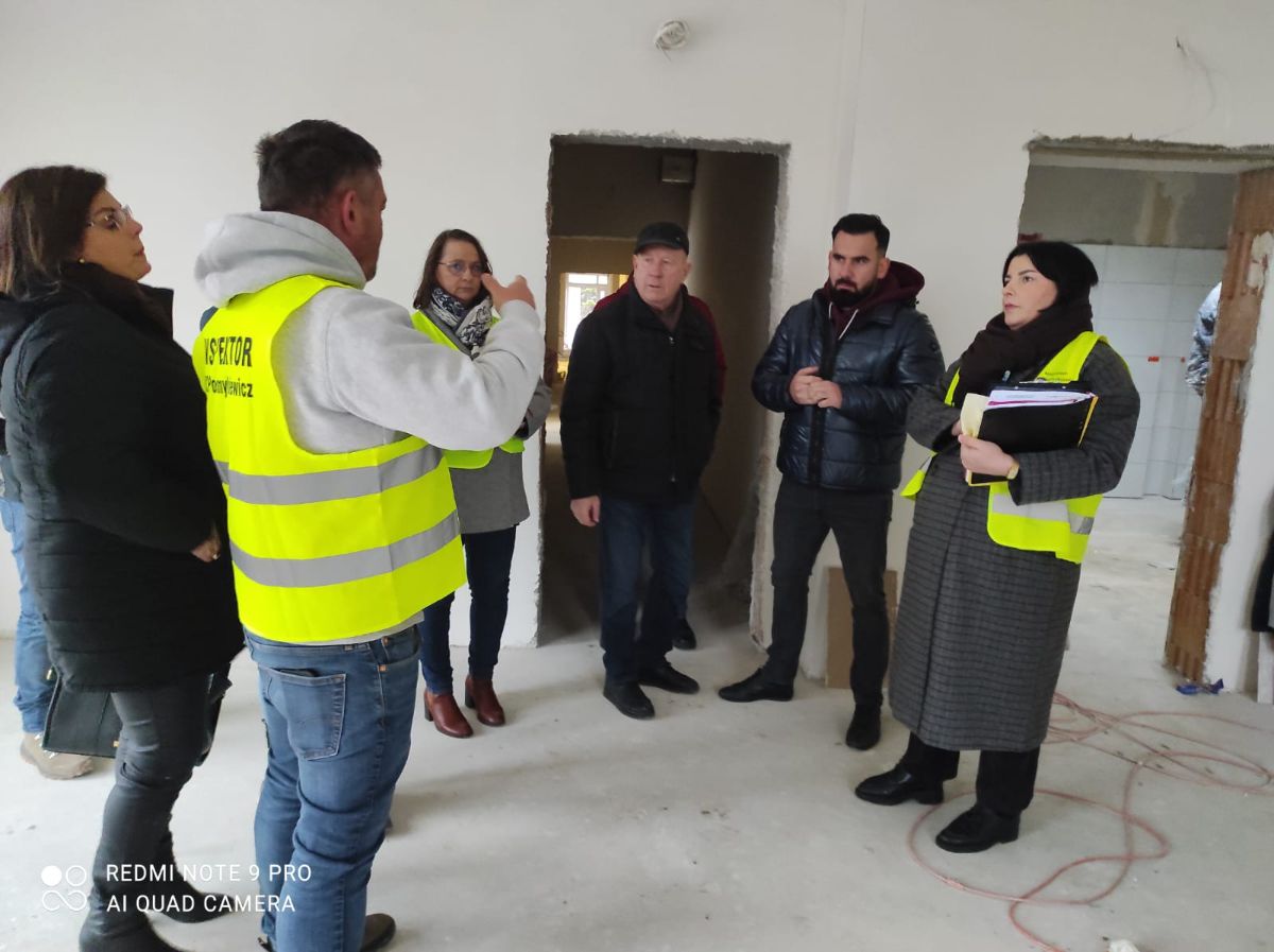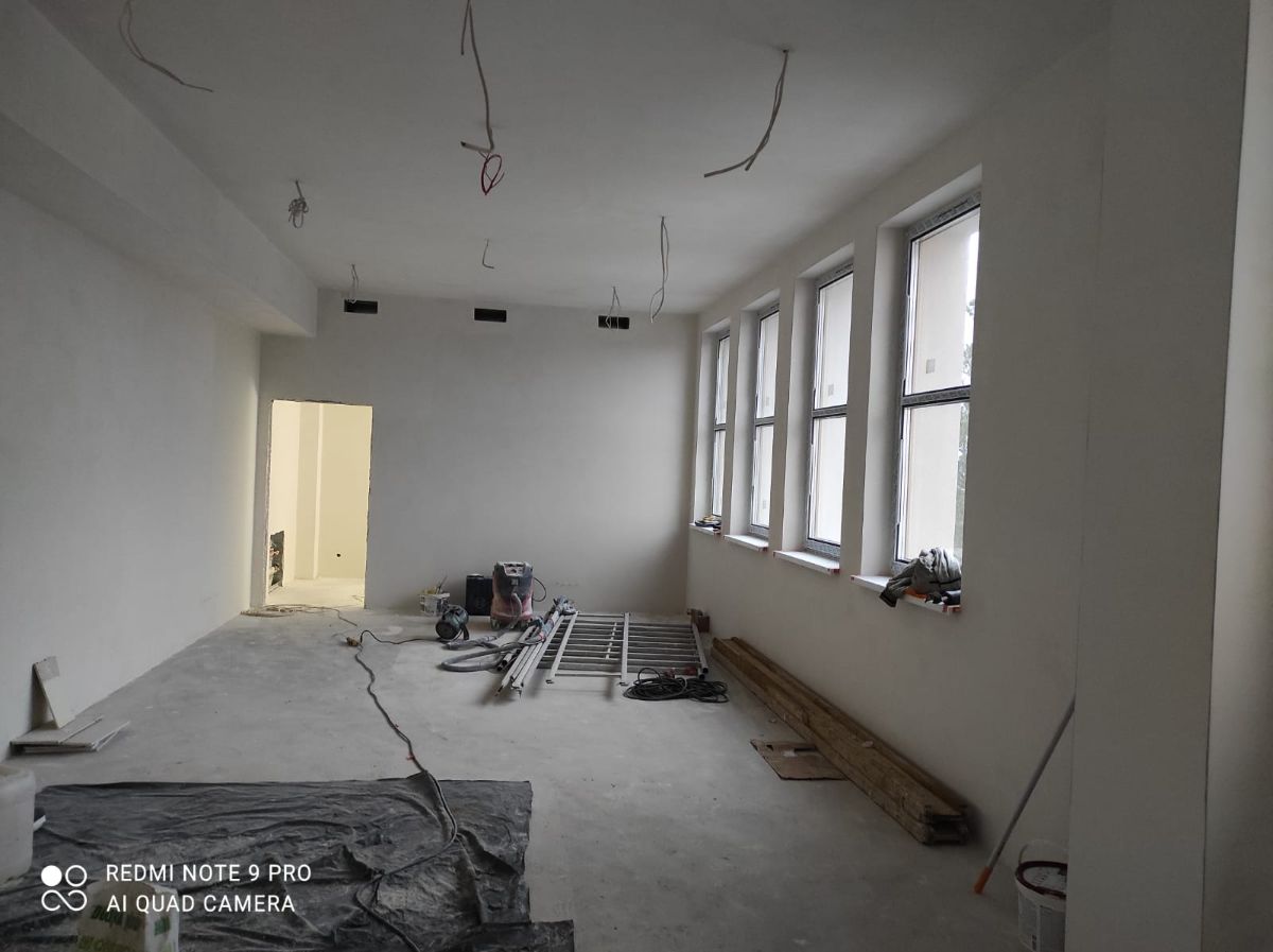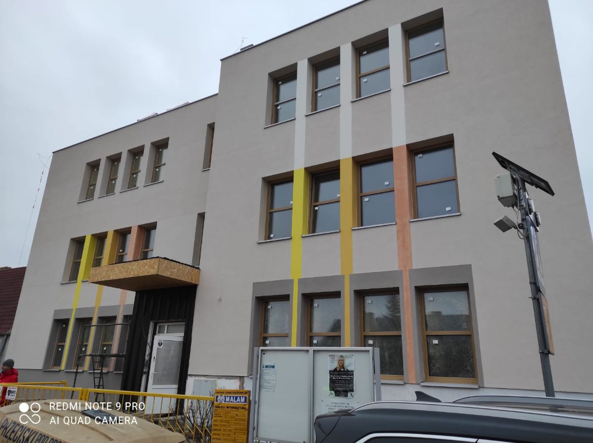 Wykonane zostały głównie roboty murarskie, ścianki działowe, częściowo posadzki, częściowo roboty wykończeniowe, a także roboty instalacyjne sanitarne i elektryczne. Wykonana już została elewacja wraz z ociepleniem budynku. Zamontowano nowe okna. Zainstalowane zostały pompy ciepła. Posadowiono też dodatkowe panele fotowoltaiczne. Roboty toczą się jednocześnie na wszystkich kondygnacjach, tj.: w piwnicy, na parterze oraz pierwszym i drugim piętrze w starej części szkoły oraz w dobudowanej części przedszkolnej. Wykonano już ponad 50% zakresu robót. Oprócz robót związanych z budynkiem w ramach inwestycji zaplanowano też zagospodarowanie terenu i montaż monitoringu.