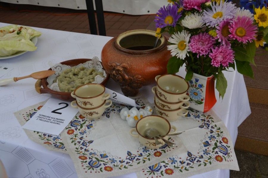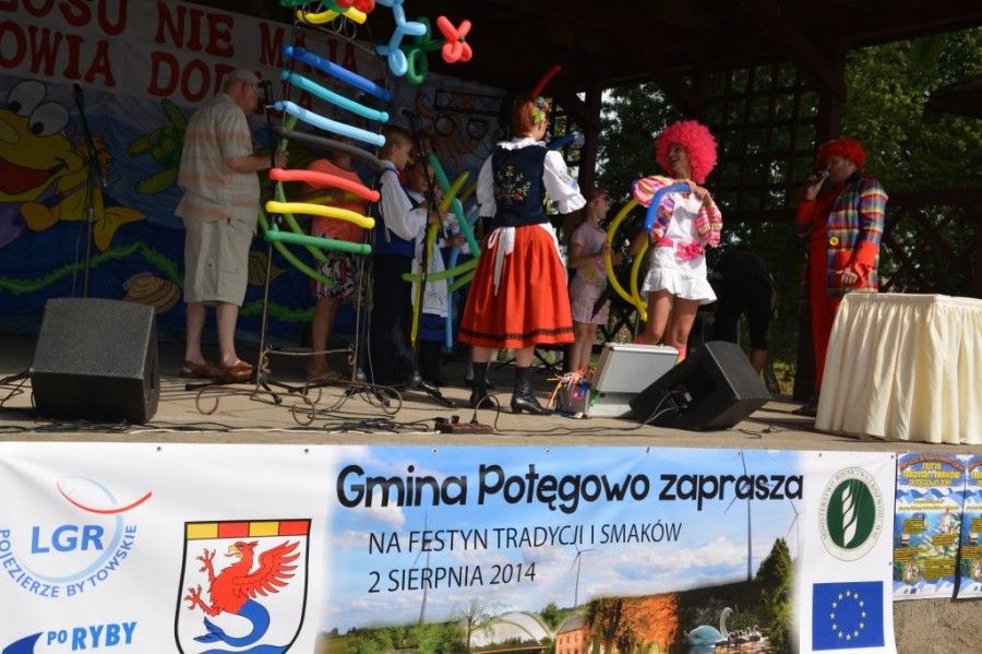 „Festyn tradycji i smaków”, który odbył się 2 sierpnia 2014r. przy Gminnym Ośrodku Kultury w Potęgowie, został realizowany w ramach Programu Operacyjnego „Zrównoważony rozwój sektora rybołówstwa i nadbrzeżnych obszarów rybackich 2007-2013 w ramach środka 4.1. Rozwój obszarów zależnych od rybactwa z wyłączeniem realizacji operacji polegających na funkcjonowaniu lokalnej grupy rybackiej (LGR) oraz nabywaniu umiejętności i aktywizacji lokalnych społeczności. Celem projektu była organizacja festynu rodzinnego, który przyczyni się do promocji i kultury obszaru LSROR oraz wzmocnienia znaczenia sektora rybnego poprzez propagowanie działań zmierzających do zwiększenia spożycia ryb. Mieszkańcy gmin należących do LGR „Pojezierze Bytowskie” mogli poznać swoją kulturę i tradycję, wziąć udział w konkursach, dzięki czemu mogli się wzajemnie zapoznać i zintegrować oraz wymienić doświadczenia. Zaszczycił nas swoją obecnością Prezes Lokalnej Grupy Rybackiej „Pojezierze Bytowskie” Władysław Pędziwiatr wraz z małżonką. Była to bardzo miła okazja do bliższego zapoznania się z nowo wybranym prezesem LGR. Częścią imprezy były konkursy wędkarski i kulinarny. Zawody wędkarskie nad Jeziorem w Poganicach rozpoczęły całodniową imprezę. Wędkarskie zmagania miały charakter otwarty dla wszystkich chętnych osób z obszaru LGR „Pojezierze Bytowskie”. Spośród 11 zgłoszonych osób, do zawodów przystąpiło ośmiu śmiałków. Nad przebiegiem zawodów czuwała komisja w składzie: Jerzy Waldemar Awchinieni Wójt Gminy Potęgowo i Grzegorz Kulik Prezes Związku Wędkarskiego Słupsk „Koło Potęgowo”. Zawody miały na celu upowszechnianie tradycji wędkarskiej, popularyzowanie wędkowania jako rodzaju sportu, integrację zawodników z poszczególnych gmin, a zarazem rozpowszechnianie spożywania ryb. Spośród wszystkich uczestników, największą rybę złowił Patryk Suder. Również okazy złapane przez Zbigniewa Ulaszka i Dariusza Krawca zdobyły uznanie Jury, dając im tym samym kolejno drugą i trzecia lokatę. Rozstrzygnięcie konkursu nastąpiło na scenie przy GOK w Potęgowie. Wójt Gminy podziękował wszystkim za udział w zawodach i pogratulował zdobyczy. Wszyscy uczestnicy zawodów otrzymali pamiątkowe dyplomy i gadżety promocyjne, zaś zdobywcy trzech pierwszych miejsc otrzymali nagrody rzeczowe. Najmłodszy uczestnik zawodów, Patryk Suder, otrzymał puchar, ufundowany przez Związek Wędkarski Słupsk- „Koło Potęgowo”. Smakowicie było na „Letniej scenie”, jak i na placu przy Gminnym Ośrodku Kultury w Potęgowie. W ramach organizacji festynu został przeprowadzony konkurs kulinarny pt. „Tradycyjna potrawa z Twojego regionu” na najsmaczniejszą i najbardziej charakterystyczną potrawę obszaru LSROR. Do konkursu zgłosiło się 5 uczestników, którzy przygotowali tradycyjne potrawy, nawiązujące historią do miejsca zamieszkania. Konkursowe potrawy oceniała komisja w składzie: Kucharz Pan Sławomir Miotk, Pan Jerzy Waldemar Awchimieni Wójt Gminy Potęgowo oraz Radna Gminy Potęgowo Pani Teresa Mazur. Pierwsze miejsce zajęły Panie z Gminnego Ośrodka Kultury w Dębnicy Kaszubskiej za zupę grzybową, drugie miejsce otrzymały pierogi przygotowane przez Panią Bożenę Gwóźdź, natomiast trzecie miejsce na podium zajęła czernina przygotowana przez KGW „Dolina Łupawy”. Wszyscy uczestnicy konkursu kulinarnego otrzymali pamiątkowe dyplomy oraz gadżety promocyjne. Na zwycięzców konkursu czekały atrakcyjne nagrody rzeczowe. Gratulujemy smakowitej pasji i zapraszamy na kolejne edycje konkursu. Jedną z głównych, a na pewno najbardziej smakowitych prezentacji, były pokazy kulinarne w wykonaniu pana Sławomira Miotk. Dzięki profesjonalnemu podejściu kucharza zgromadzona publiczność, co kilkadziesiąt minut mogła skosztować m.in. takich pyszności jak grillowany filet z łososia w szynce Prościutto di Parma, tatara ze śledzia, nugettsy z łososia w tortilli, zupę z ryb słodkowodnych. Na najodważniejszych czekał fartuch Szefa Kuchni i samodzielne przygotowanie potrawy na oczach zgromadzonej publiczności. Wszystkie rarytasy przygotowane na scenie były serwowane zgromadzonej publiczności. Uroczymi kelnerami po raz kolejny na naszej imprezie byli: Kacper Buba, Piotr Krasnoborski oraz Patryk Lemek. Dla miłośników rybnych potraw przez cały dzień czekał wyśmienity poczęstunek. Wszyscy goście mogli za darmo skosztować potraw rybnych, m.in. zupy rybnej z pstrąga, sałatki z makreli i tuńczyka oraz smażonego dorsza. Po całym dniu pełnym atrakcji i przepysznych dań z rybą w roli głównej, do wspólnej zabawy zaprosił zespół „Pulsar. Wspólna zabawa trwała do późnych godzin nocnych. Główną atrakcją imprezy pn. „Festyn Tradycji i smaków” były warsztaty z zakresu dziedzictwa kulturowo- historycznego obszaru LSROR, które prowadziła Agencja Turystyczno- Artystyczna Przygoda w Lęborku. Celem warsztatów była promocja obszaru objętego LSROR, promowanie obszaru działania Lokalnej Grupy Rybackiej „Pojezierze Bytowskie”, zgromadzenie wiedzy z zakresu dziedzictwa kulturowo- historycznego obszaru działania LGR „Pojezierze Bytowskie”. Podczas warsztatów mieszkańcy obszaru LSROR mogli: poznać warsztaty haftu kaszubskiego, uczestniczyć w warsztatach muzycznych związanych z tradycyjnymi instrumentami kaszubskimi, spotkać się z gawędziarzami kaszubskimi, poznać gry i zabawy związane z tradycjami kaszubskimi, zapoznać się ze zwyczajami i tradycjami kaszubskimi. Najmłodsi uczestnicy imprezy czynnie brali udział w przygotowanych przez animatorów pokazach, warsztatach haftu, puszczaniu mega baniek oraz malowaniu twarzy. Motywem przewodnim były kaszubskie elementy dekoracyjne. Podczas warsztatów kulinarnych z kuchni kaszubskiej zaprezentowano sposób przyrządzenia duszonego pstrąga po kaszubsku w kiszonej kapuście z sosem z