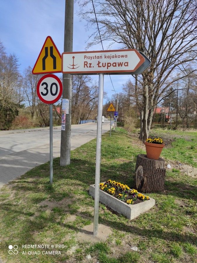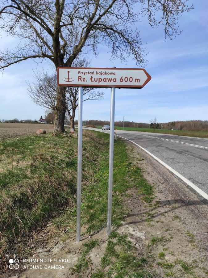 - Budowa drogi do istniejącej przystani kajakowej – miejsca wodowania lub podejmowania kajaków i placu rekreacyjnego w Łupawie: zaprojektowano i wykonano drogi dojazdowe do istniejącej przystani kajakowej: nawierzchnia z kostki betonowej o pow. 540m2 oraz nawierzchnia z ekokraty o pow. 180m2, pomost z konstrukcji stalowo-drewnianej o długości 6m i szerokości 2m do wyjścia kajakarzy na brzeg oraz do wodowania kajaków, utwardzono skarpę kiszką faszynową, zamontowano kosz na odpady, tablicę informacyjno-promocyjną, tablicę oznakowania wodnego, tablicę oznakowania drogowego, tablicę z regulaminem korzystania z infrastruktury kajakowej.