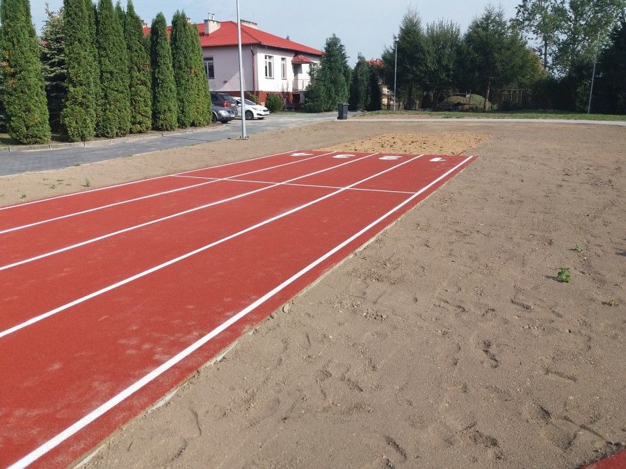 - bieżni i skoczni do skoku w dal z zeskokiem (piaskownica) o wymiarach 4 x 8m; Bieżna czterotorowa o długości 250,00 m po obwodzie w tym odcinek prosty 70,00 m, o nawierzchni poliuretanowej;