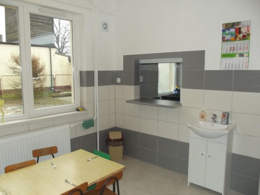 - wymiana stolarki drzwiowej – troje nowych drzwi, drzwi z okienkiem do wydawania posiłków, okienko z żaluzją do zmywaka potrzebne do odbierania brudnych naczyń.