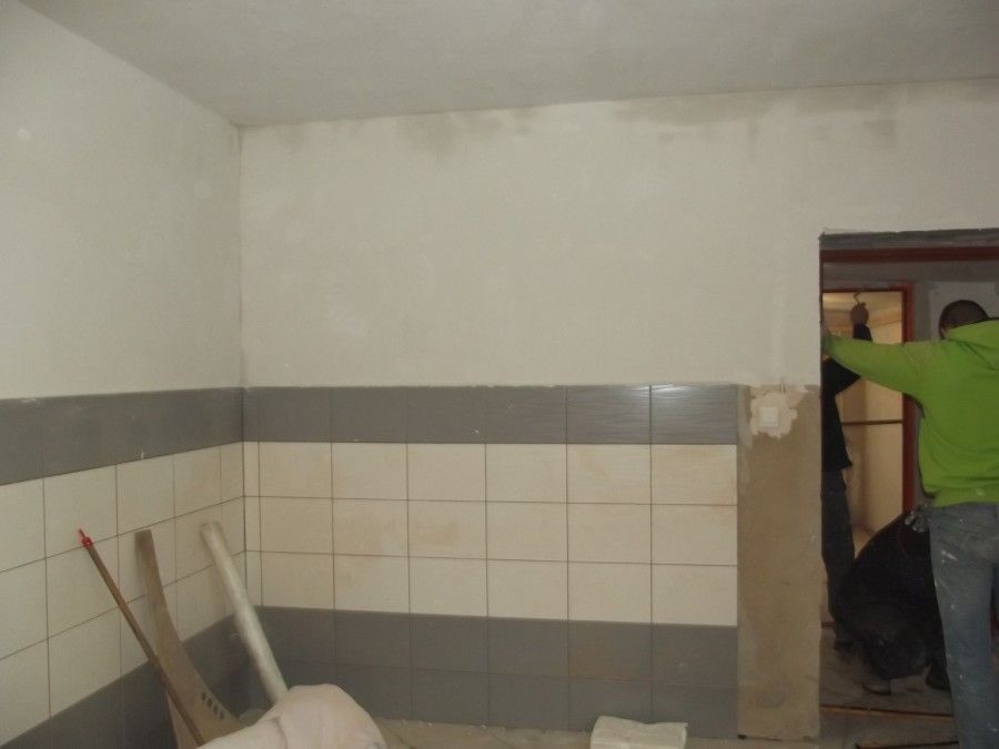 - gruntowanie powierzchni pionowych – uzupełnianie ścian, tynkowanie,