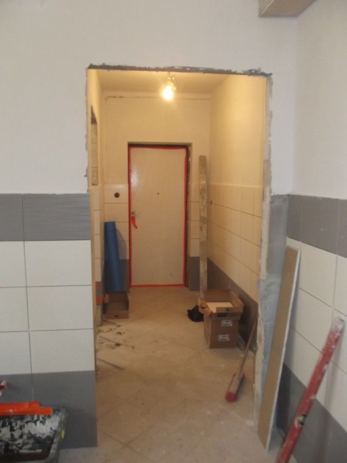 - roboty rozbiórkowe – rozebrano stary piec kuchenny, wybito nowy otwór drzwiowy i okienny,
