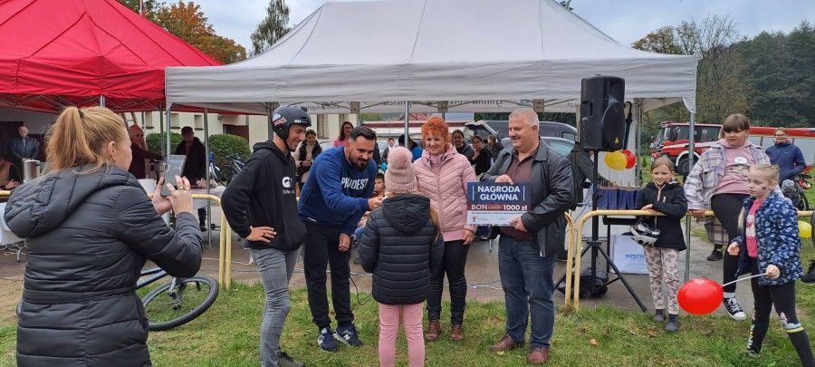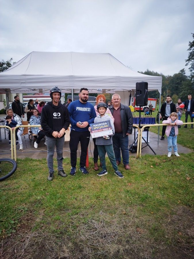 Poza nagrodami konkursowymi, nasz Mistrz Pupmtrack wylosował dwóch szczęśliwców, którzy zgłosili się do udziału w losowaniu nagród specjalnych (bon do wykorzystania w sklepie sportowym MISTRAL). Warunkiem uczestnictwa było zgłoszenie się do punktu przyjmowania zgłoszeń wraz z własnym rowerem w kasku oraz uczestnictwo w instruktażu prowadzonym prze Pana Bartosza. Spośród prawie 100 zgłoszeń, szczęśliwym zdobywcą bonu w kategorii do lat 12 został Antoś Zaborowski, natomiast w kategorii open, zwycięski los należał do Karola Bonieckiego. Gratulujemy! Mamy nadzieję, że wszystkie wręczone tego dnia nagrody korzystnie wpłyną na rozwój sportowych zamiłowań laureatów, a tym samym, zachęcą do częstszego korzystania z nowego obiektu rekreacyjno-sportowego.