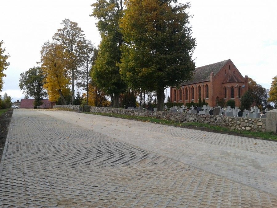 Celem inwestycji jest właściwe zagospodarowanie terenu gminnego przy kościele w Skórowie przeznaczonego na drogę i miejsca parkingowe. Inwestycja wpłynie na poprawę bezpieczeństwa użytkowników drogi i parkingów, podniesienie standardu zagospodarowania terenu i wpłynie na poprawę estetyki miejscowości Skórowo.